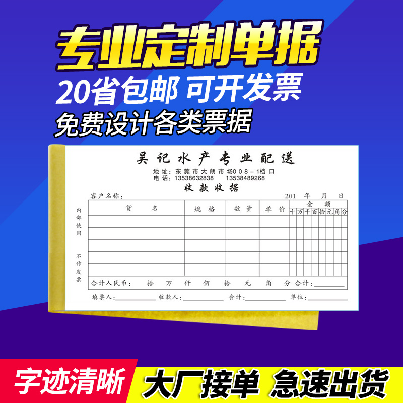收据订做培训班收据二联两联健身收据F本定制物业收据印刷收据定
