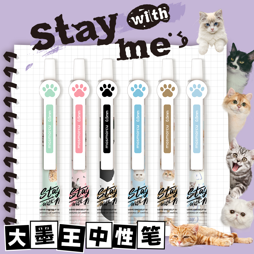 晨光全是喵按动中性笔高颜值可爱猫咪速干水笔子弹头黑色水笔MASMARCU大墨王初中小学生考试专用刷题笔签字笔