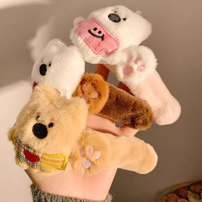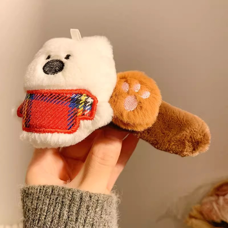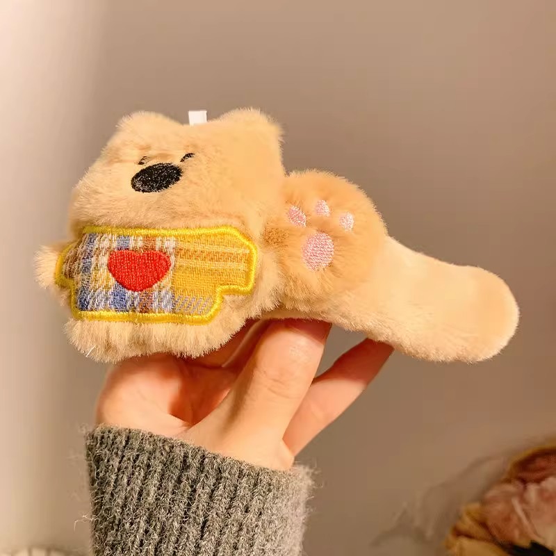 秋冬新款可爱熊仔一字夹毛绒少女盘发抓夹甜美百搭马尾鸭嘴夹发卡