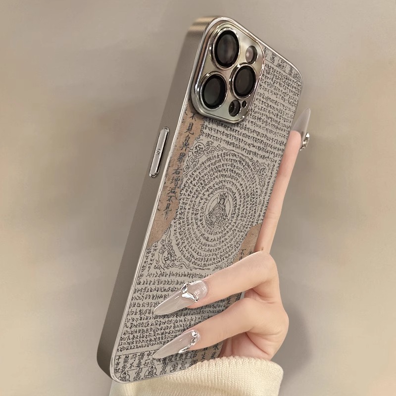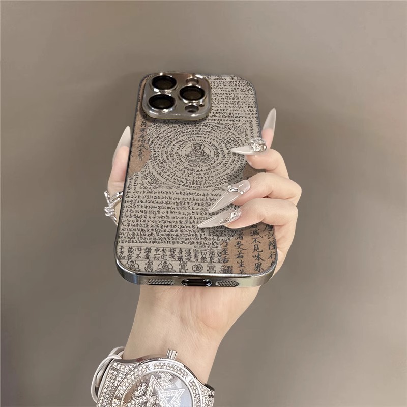 梵文心经适用于苹果16plus手机壳iPhone17pro新款14promax高级感15pro高级感12国风11小众13promax电镀保护套