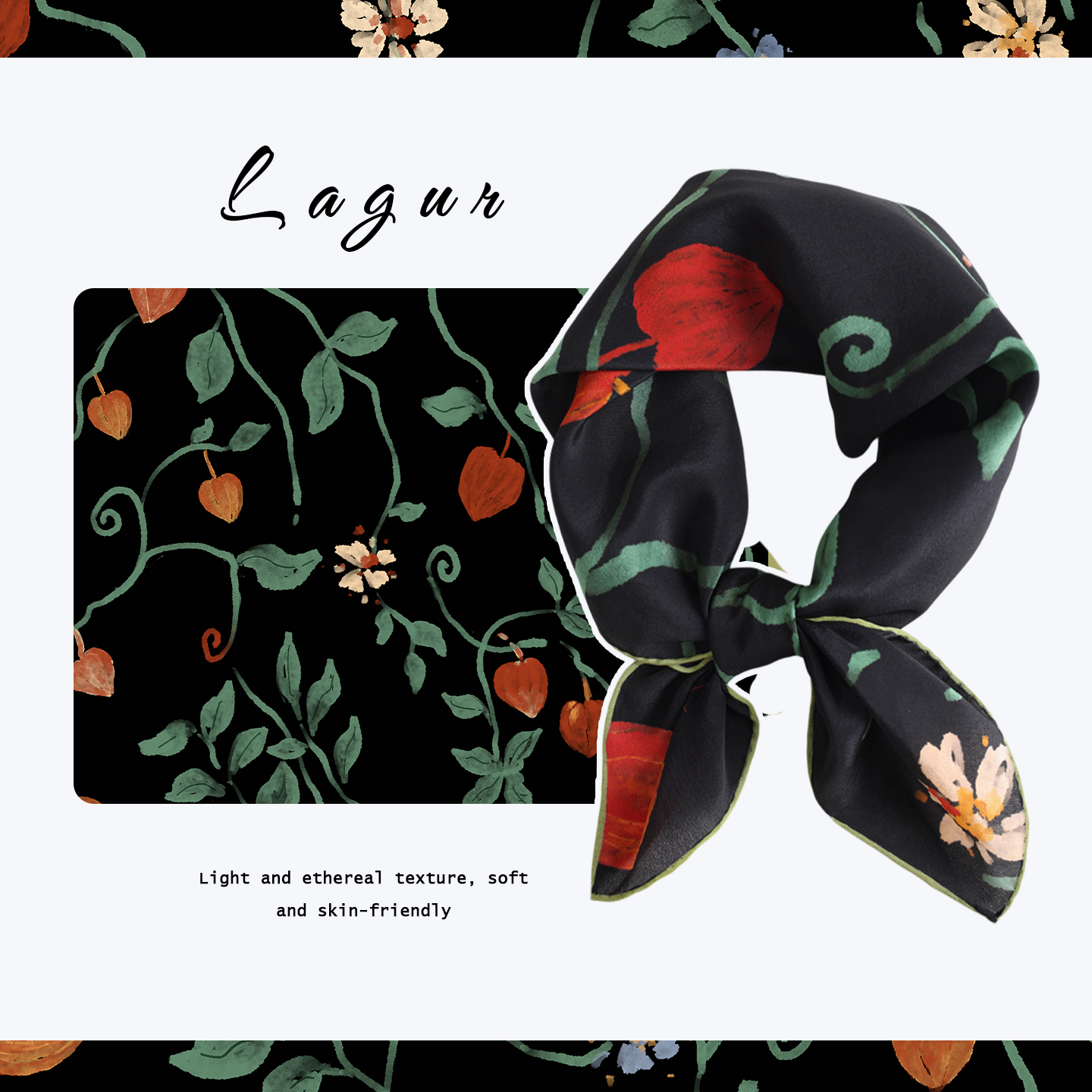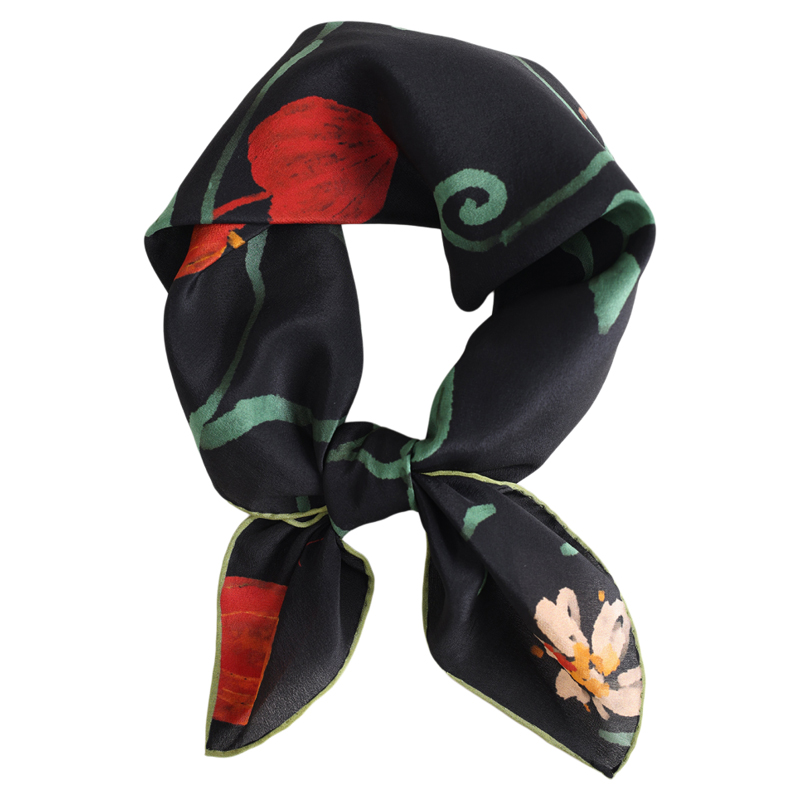 「生命力之果」黑色100%桑蚕丝丝巾65方巾披肩发带发饰领巾女新款