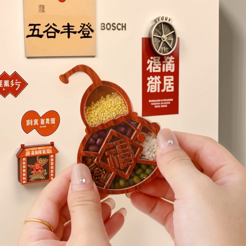 2025新款五谷丰登冰箱贴立体磁力贴乔迁之喜杂粮搬家创意纪念装饰