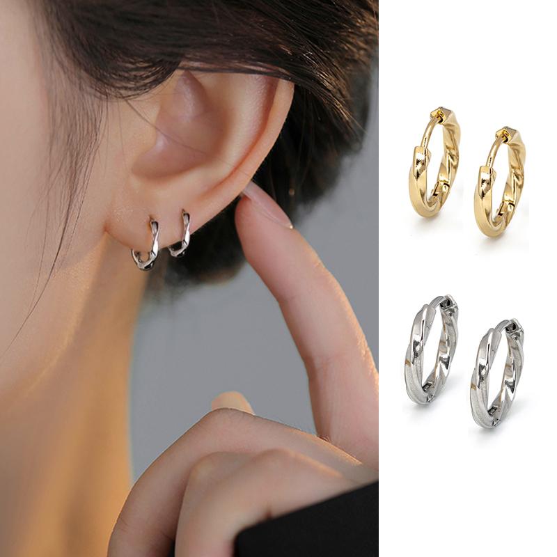 手术钢医用钛钢莫比乌斯耳扣金色耳环女防过敏素圈耳钉耳圈养耳饰