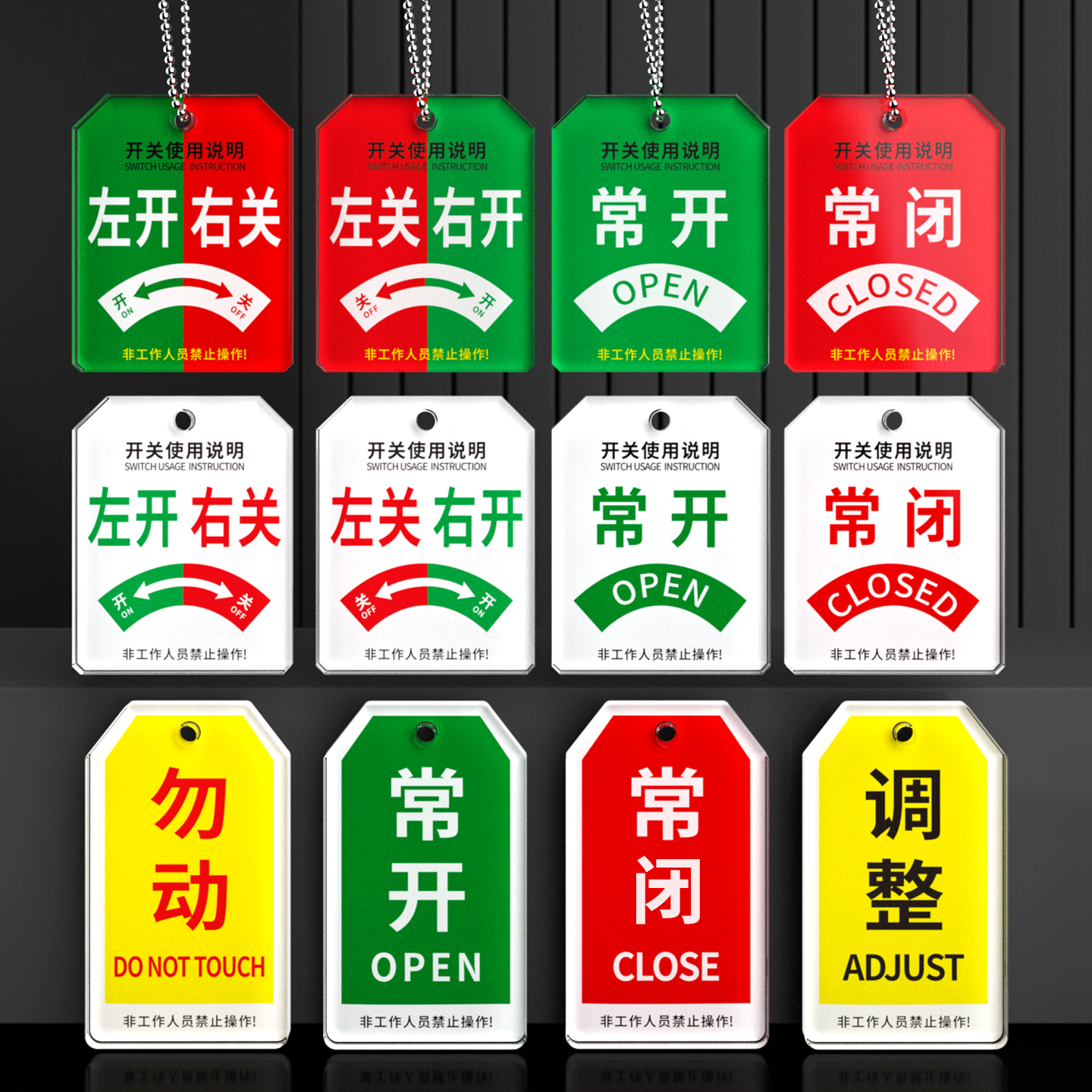 亚克力常开常闭标识牌常开挂牌调整勿动开闭挂牌开关提示牌标牌阀门管道机器设备状态左开右关消防定做
