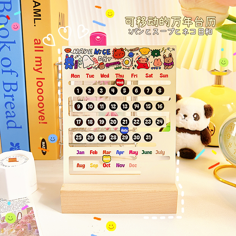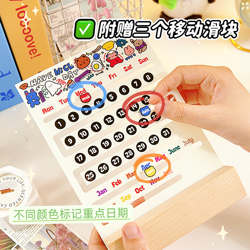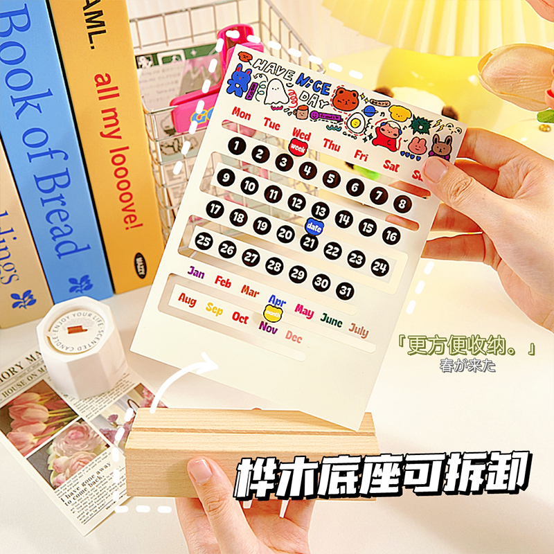 2024年网红可移动亚克力桌面台历创意办公室装饰摆件打卡记录表高考考研倒计时提醒牌万年历记事涂鸦木质日历
