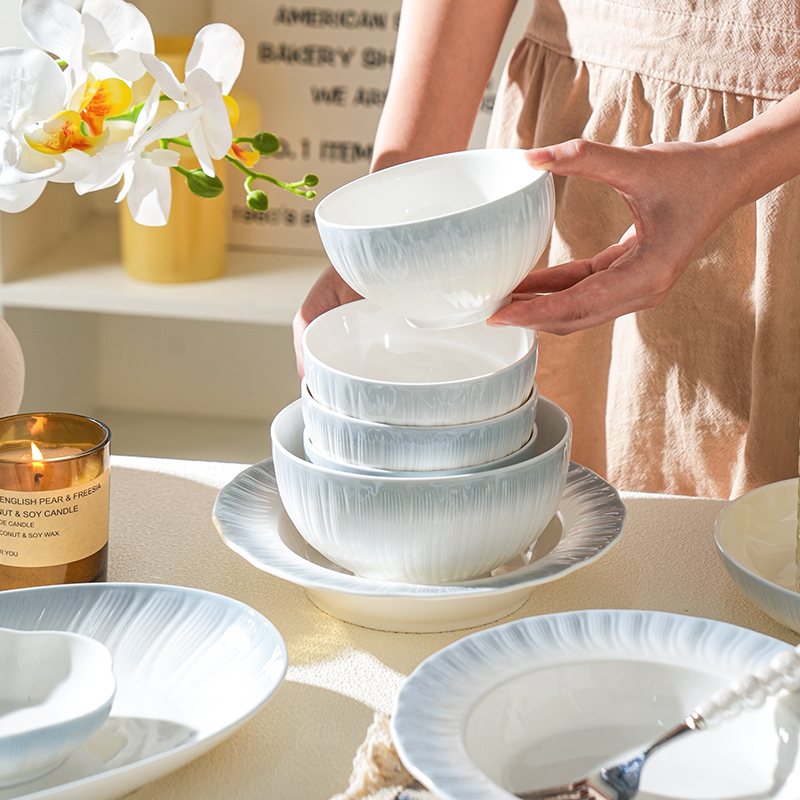 法式奶油风陶瓷碗餐具碗盘套装吃饭碗高颜值轻奢汤碗家用2025新款