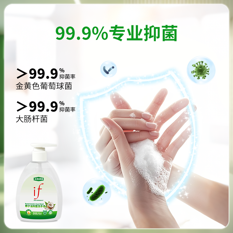 if椰子油抑菌洗手液家用按压瓶椰油植物家庭装儿童不伤手清洁瓶装