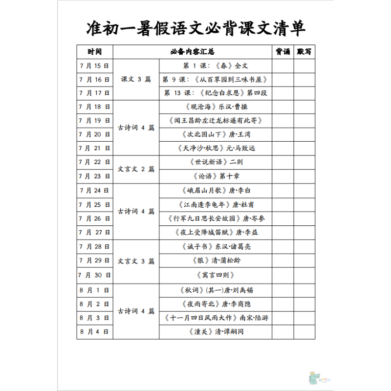 25秋七年级上册语文必背课文清单每课知识考点归纳总结期中期末复习课内重点积累背诵高频汇总课本同步每日一练古诗词文言文