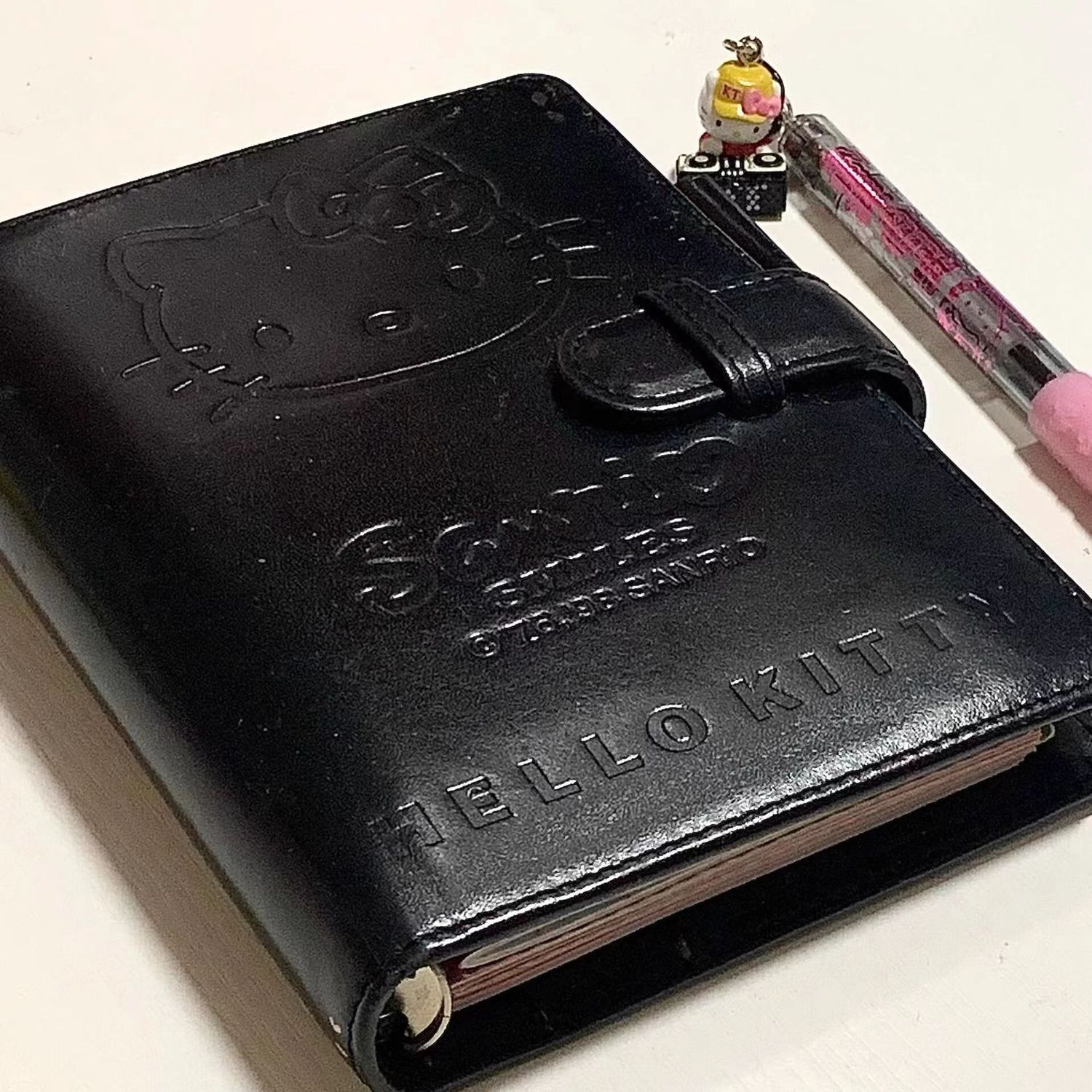 日系HelloKitt黑色皮质A7手账本ins简约高颜值随身活页日记笔记本