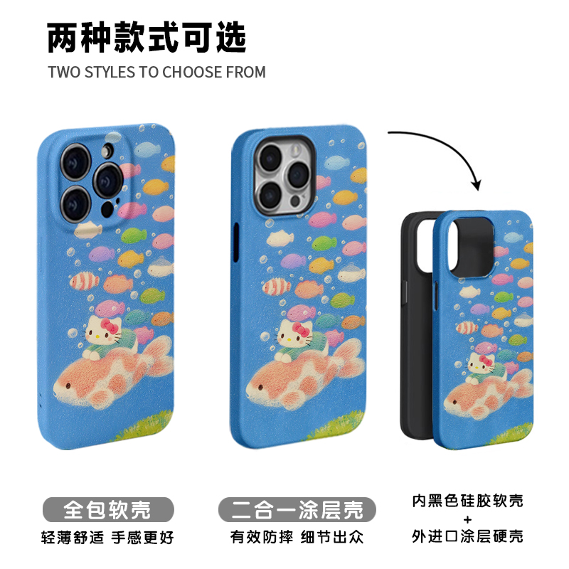 【很"鱼"快】多巴胺小鱼猫咪适用iPhone16/15pro手机壳华为pura70苹果14红米k80vivoX200软opporeno12畅享70