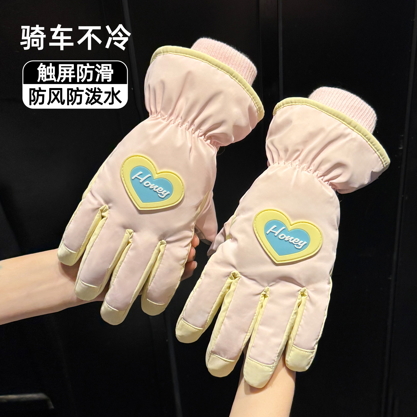 爱心全指可爱滑雪手套女冬季保暖骑行加绒加厚防水防寒可触屏骑车