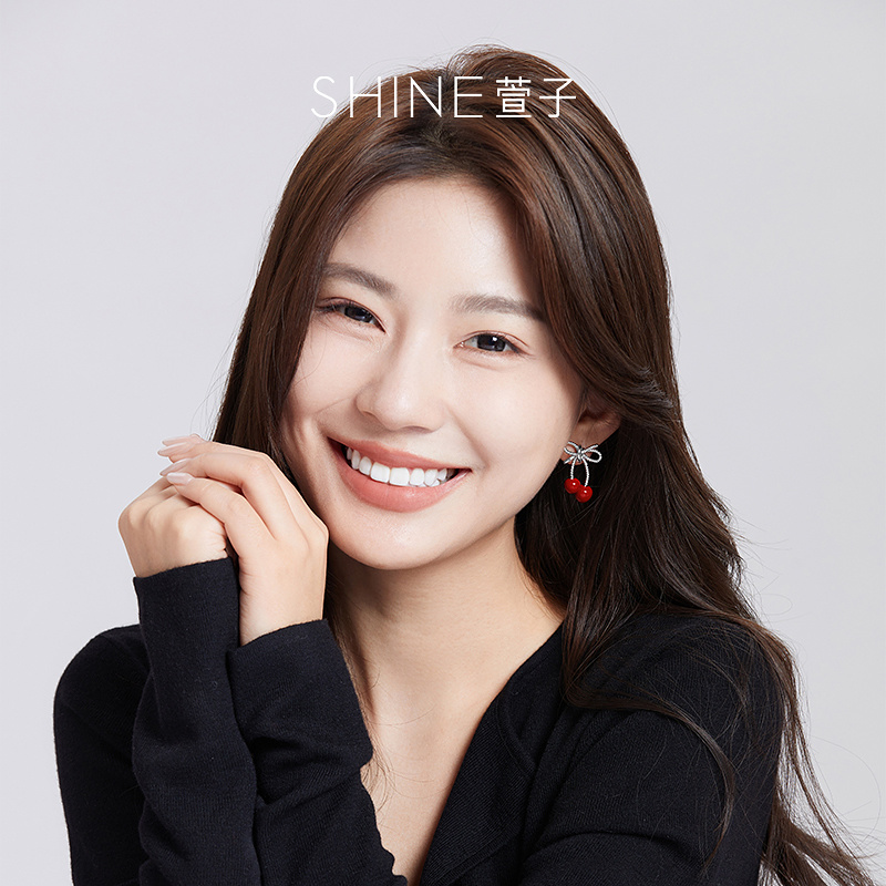 SHINE萱子饰品时髦樱桃系列蝴蝶结甜美樱桃耳环精致耳钉女度假风