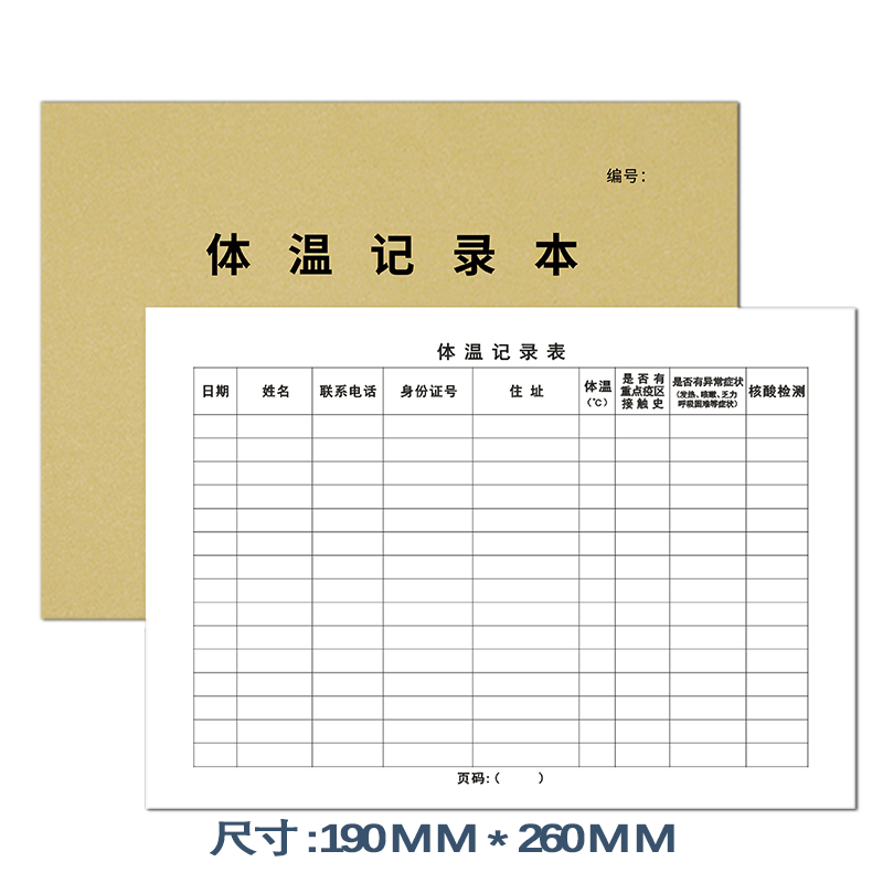 现货体温记录表社区防控防疫情体温测量登记本公司员工体温记录学校班级学生每日体温测量防疫物资领用登记本