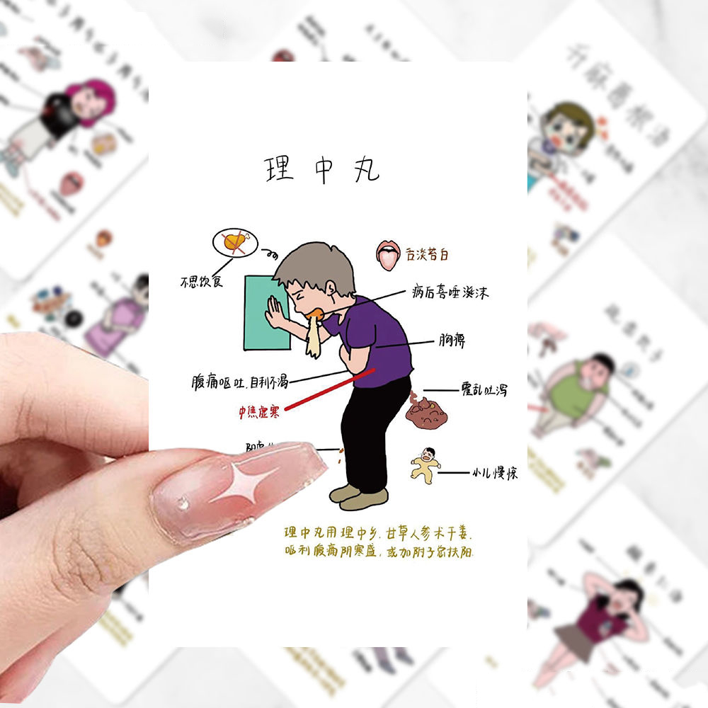 趣味方剂学卡片中医方剂歌诀学生笔记国学精粹学习便携插画小手卡