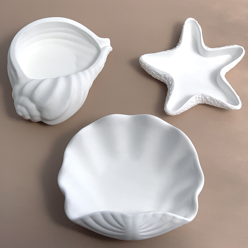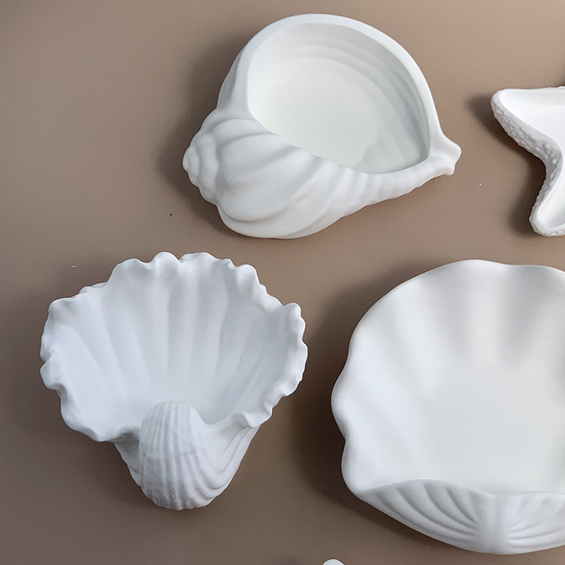 新款白色海螺贝壳蜡烛空杯贝壳收纳碟子托盘石膏拍照道具
