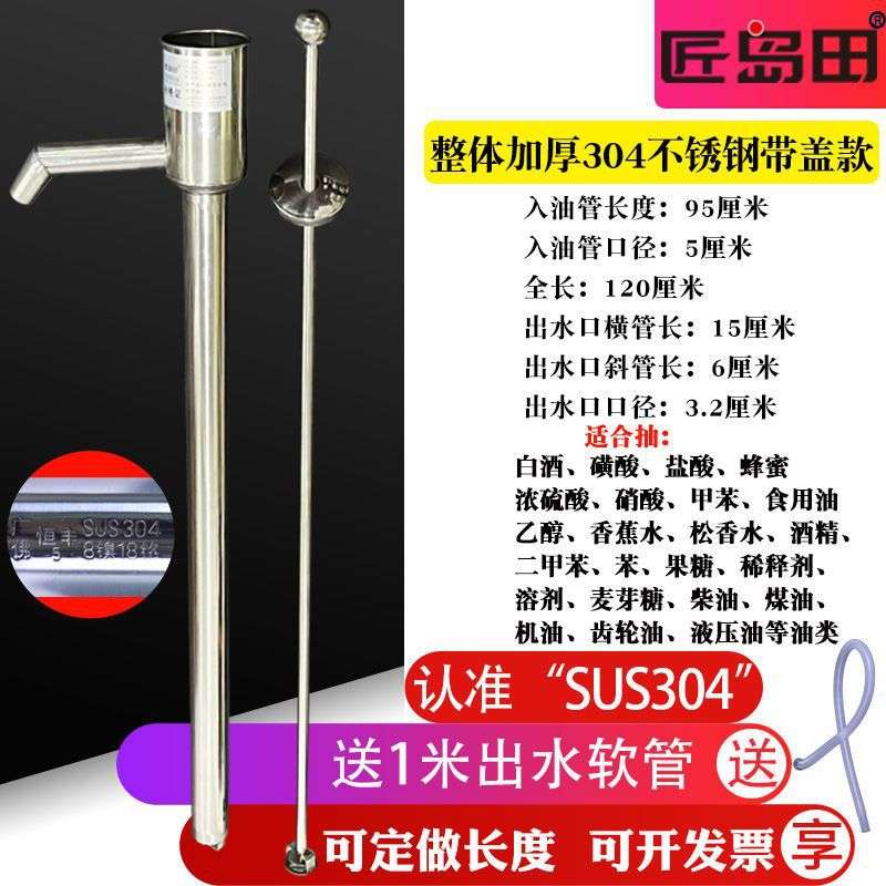 匠岛田304不锈钢手动油抽子 带盖子防溅化工抽液泵自吸插桶抽油泵