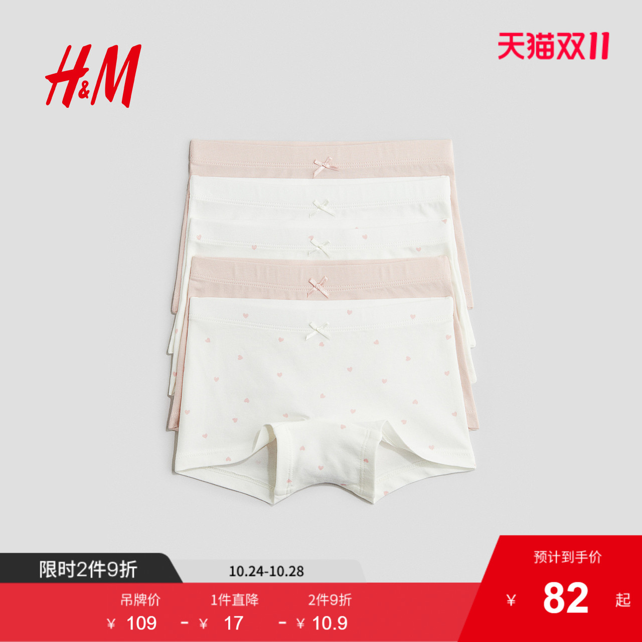 HM童装儿童儿童内裤女童棉质松紧腰蝴蝶结平角四角裤5条装0688916