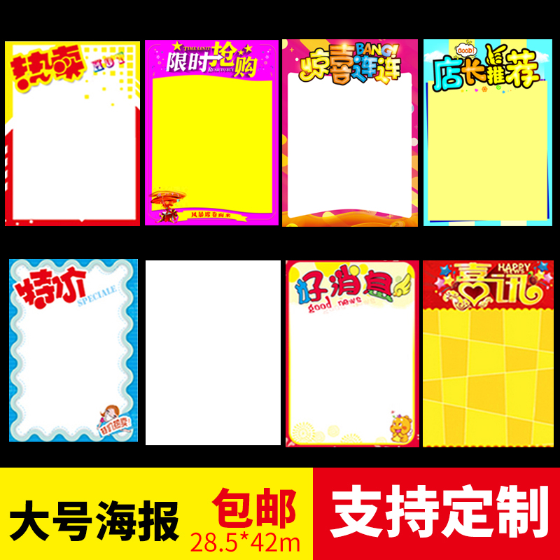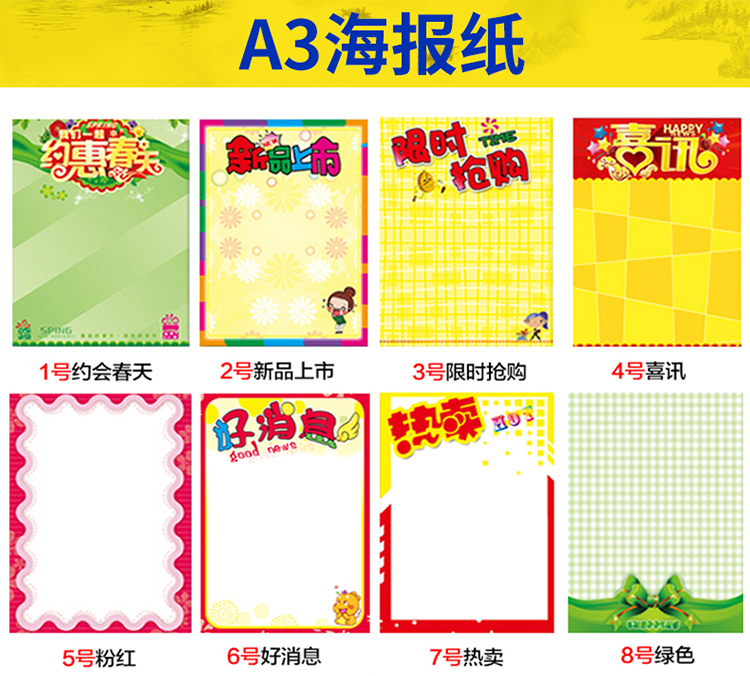 POP广告纸A3海报50张空白大号活动手写双面定制特标签爆炸贴新款创意药店超市商场促销宣传用纸价格签纯白黄