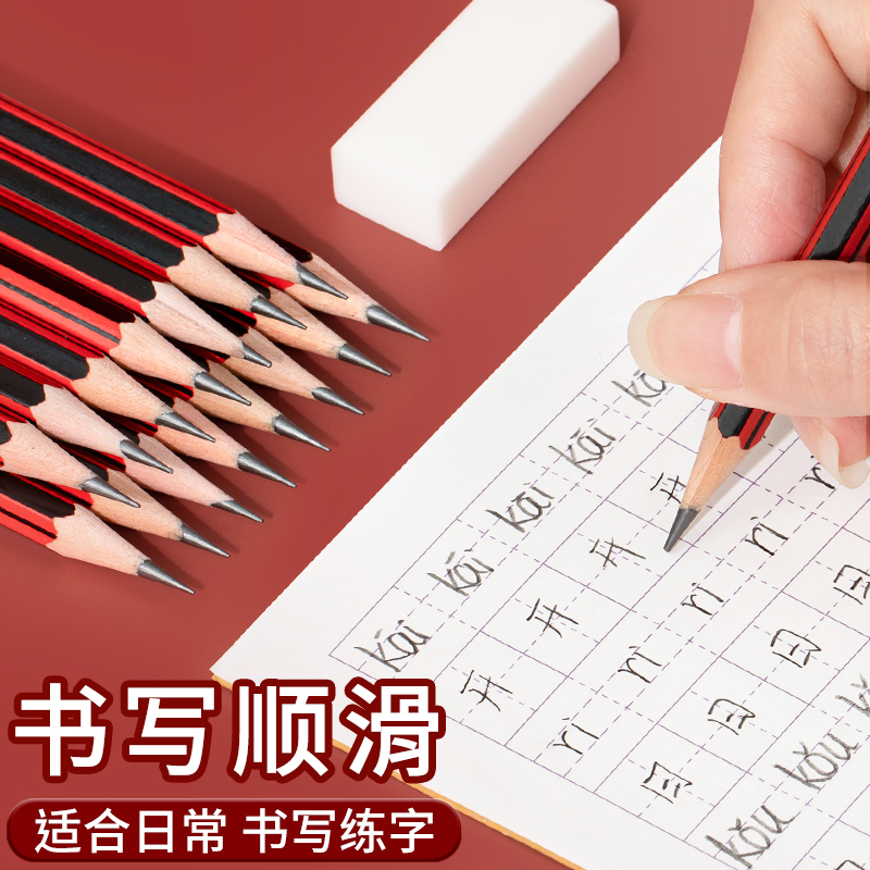 中华铅笔hb小学生专用六角形木杆2b初学者考试用带橡皮擦头一年级书写不易断幼儿园儿童练字2比素描文具套装