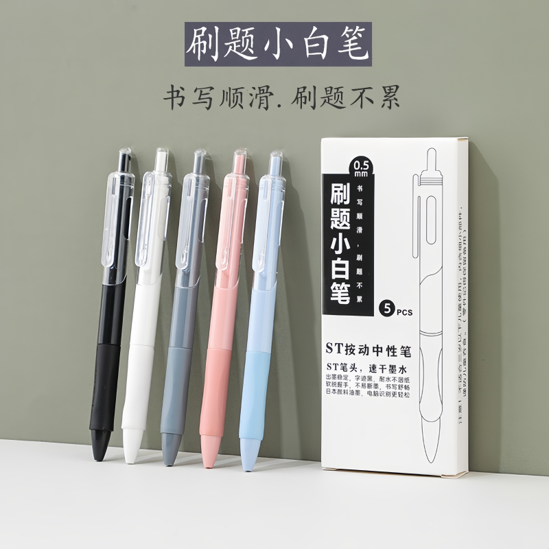 ST葫芦头刷题小白笔ins高颜值学生按动笔0.5mm中性笔碳素黑色水性