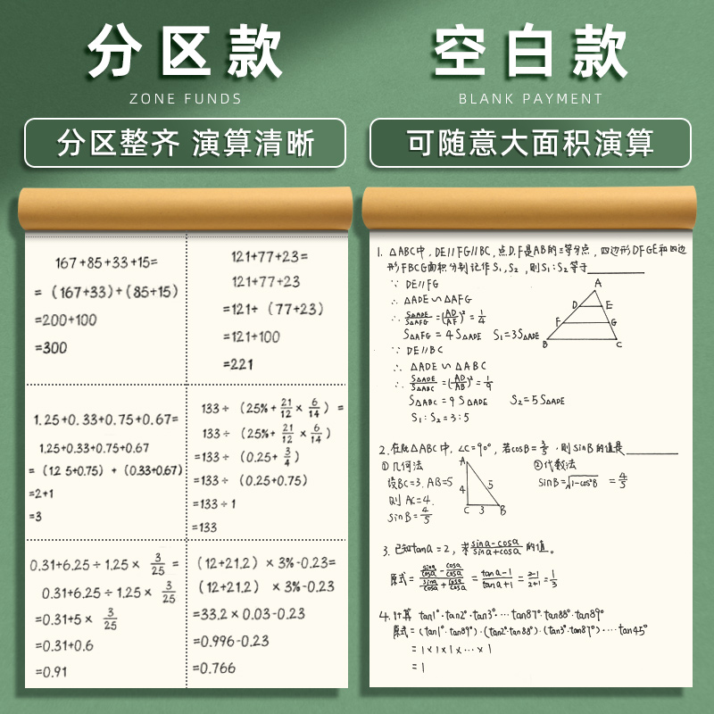 分区草稿本草稿纸小学生用批发便宜空白数学演草本草纸本演草纸考研专用初中生高中生本子可撕加厚白纸计算