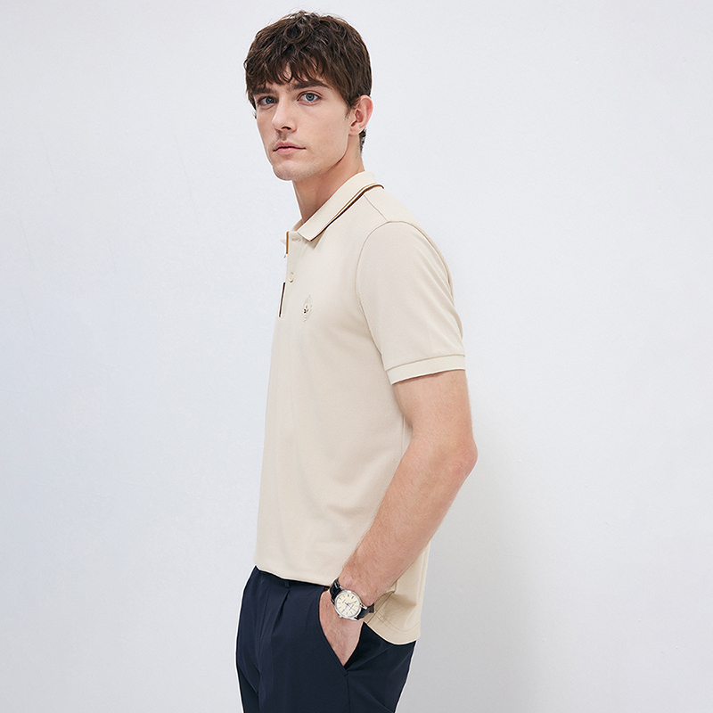 【凉感】HLA/海澜之家商务POLO衫夏季新款弹力翻领透气短袖T恤男