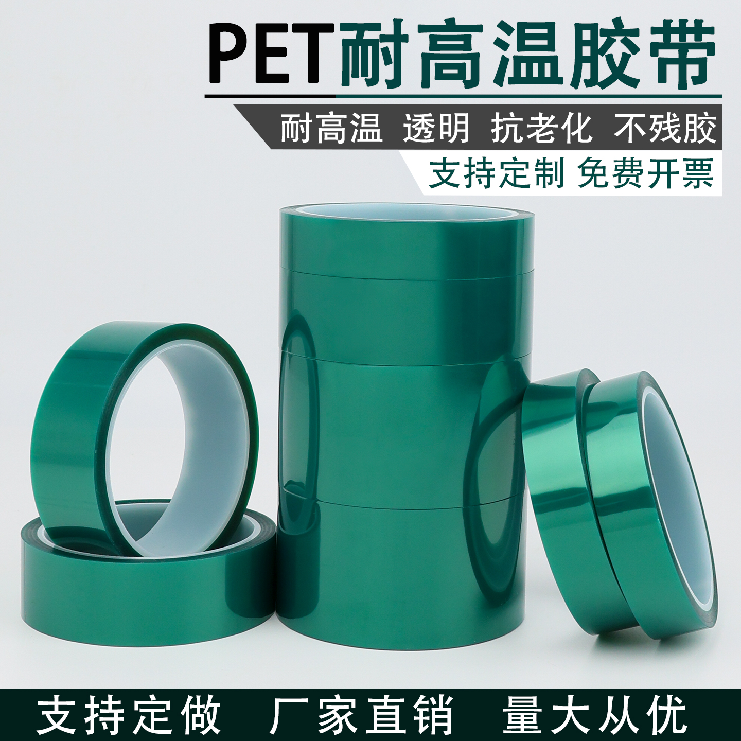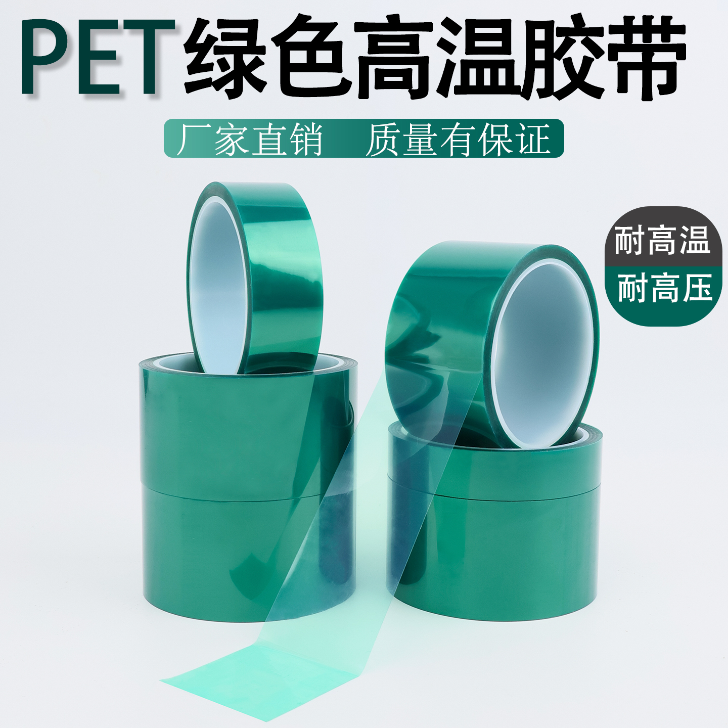 PET绿色耐高温胶带夹胶玻璃PCB板电镀锂电池外壳喷涂烤漆无痕保护膜胶带遮蔽耐酸碱绝缘绿色硅胶带0.05mm厚