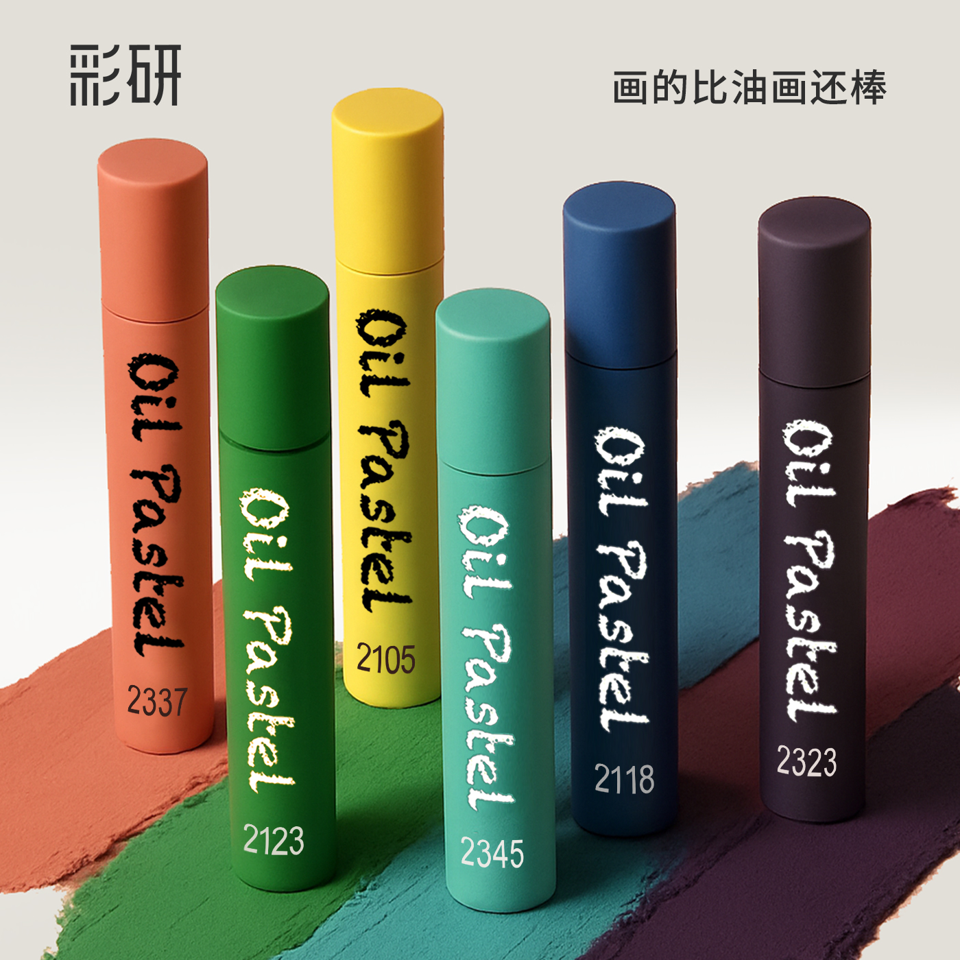 彩研油画棒小学生幼儿园专用蜡笔炫彩棒diy套装24色重彩颜色笔美术专用儿童彩画笔全套色粉笔超软油彩笔软性
