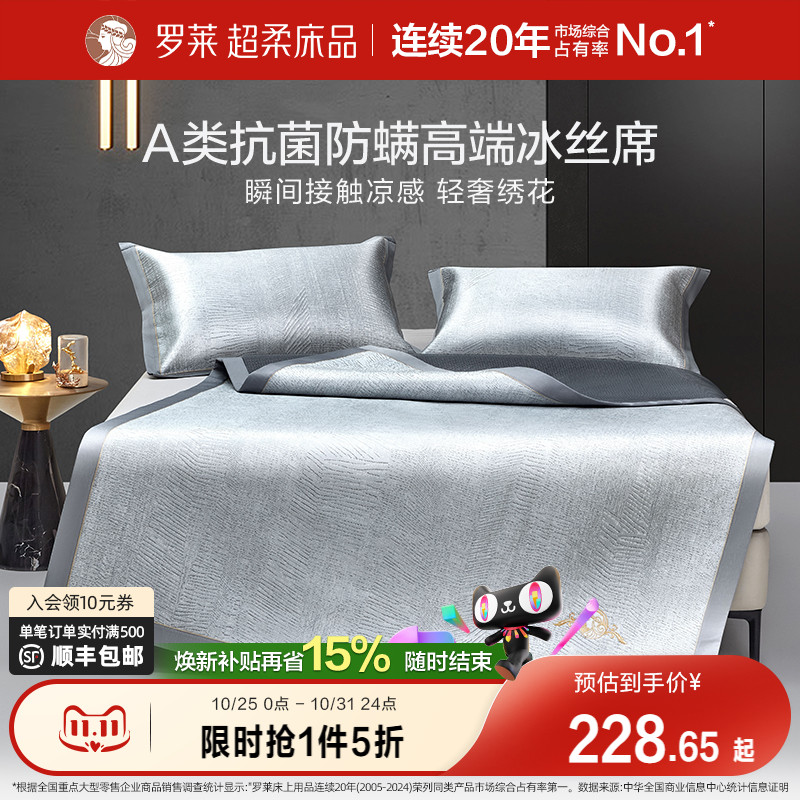 罗莱家纺A类冰丝凉席子凉感抗菌防螨高端双人学生宿舍两三件套