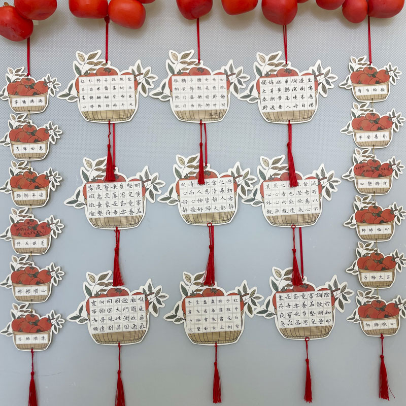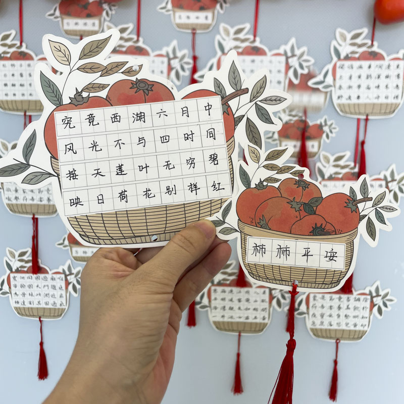 创意秋天的柿子形状硬笔作品纸学生比赛专用柿柿如意书签小小书法家班级文化墙异形书写古诗练字彩色文创卡纸