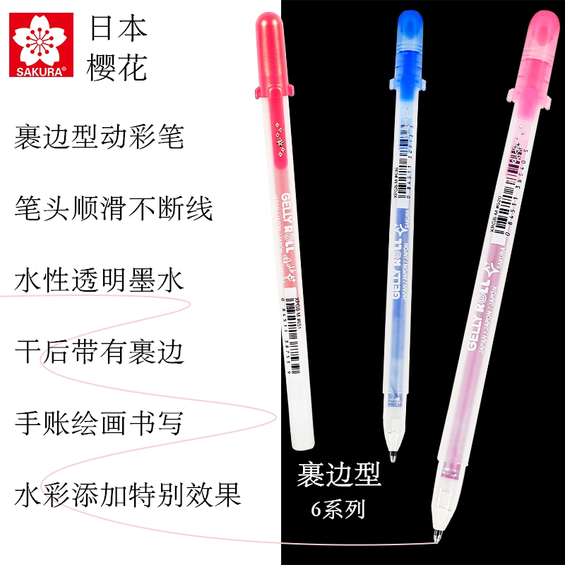 SAKURA/樱花金银裹边型动彩笔6系手账绘画书写笔水彩高光包边效果彩色笔记号笔波晒果冻勾线笔漫画笔
