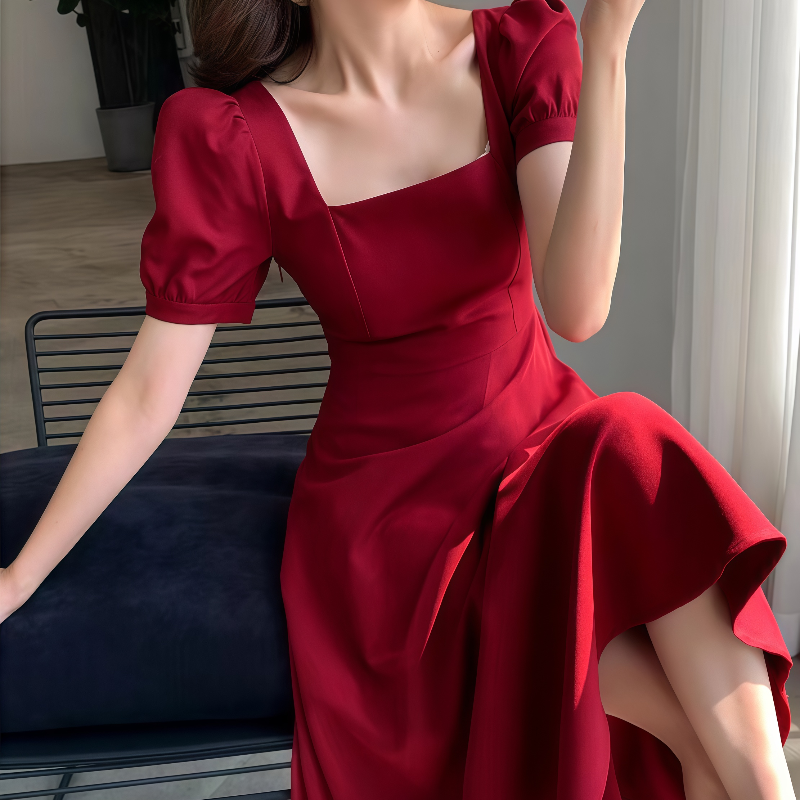 【270克棉磨毛】2025秋修身长款连衣裙女收腰显瘦方领气质针织裙