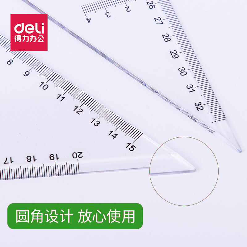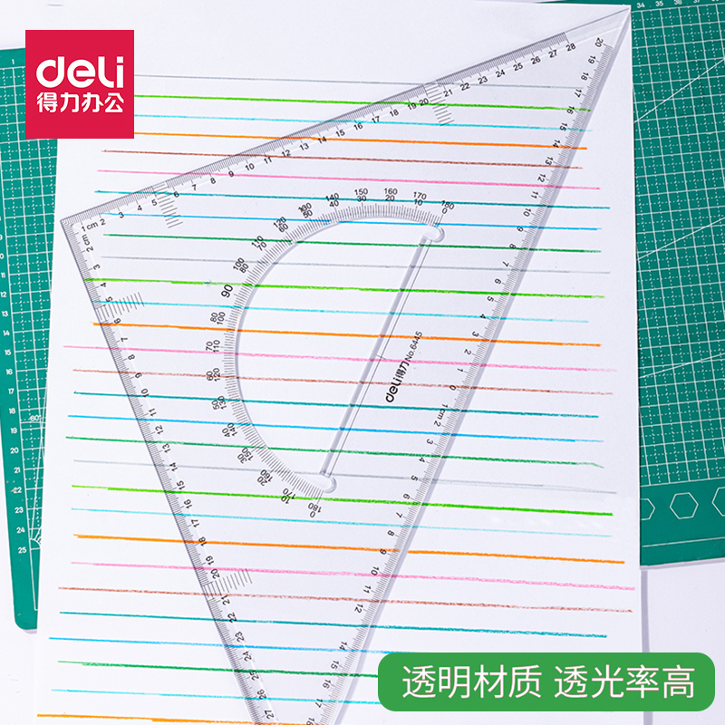 得力三角尺塑料三角板套装绘图尺大号加厚透明学生制图尺教学厘米尺工程设计测量工具中号等腰直角量角器套装