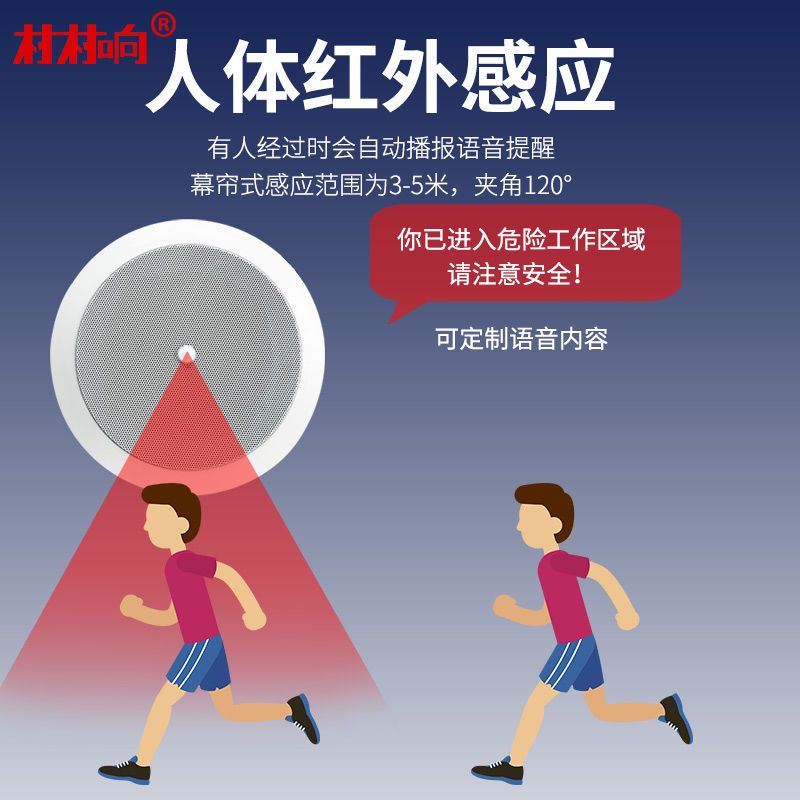 村村响人体感应语音提示器感应语音播报吸顶感应喇叭红外感应音响