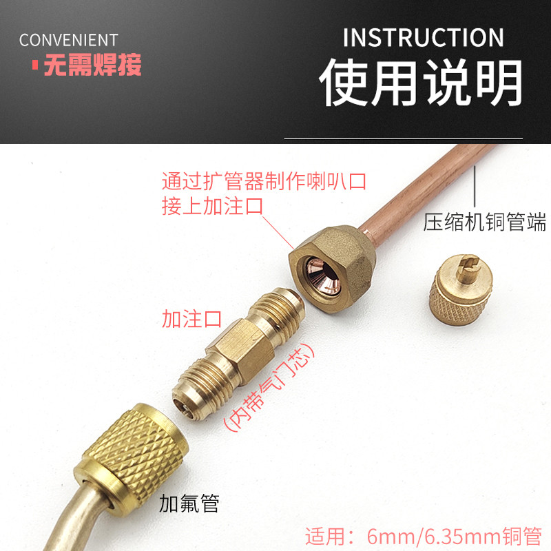 冰箱免焊接头冷柜压缩机加氟接口工艺口单向阀6/8mm铜管无需焊接