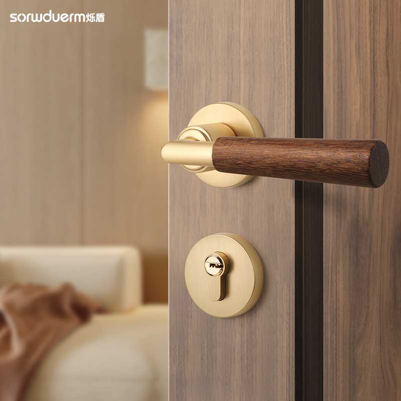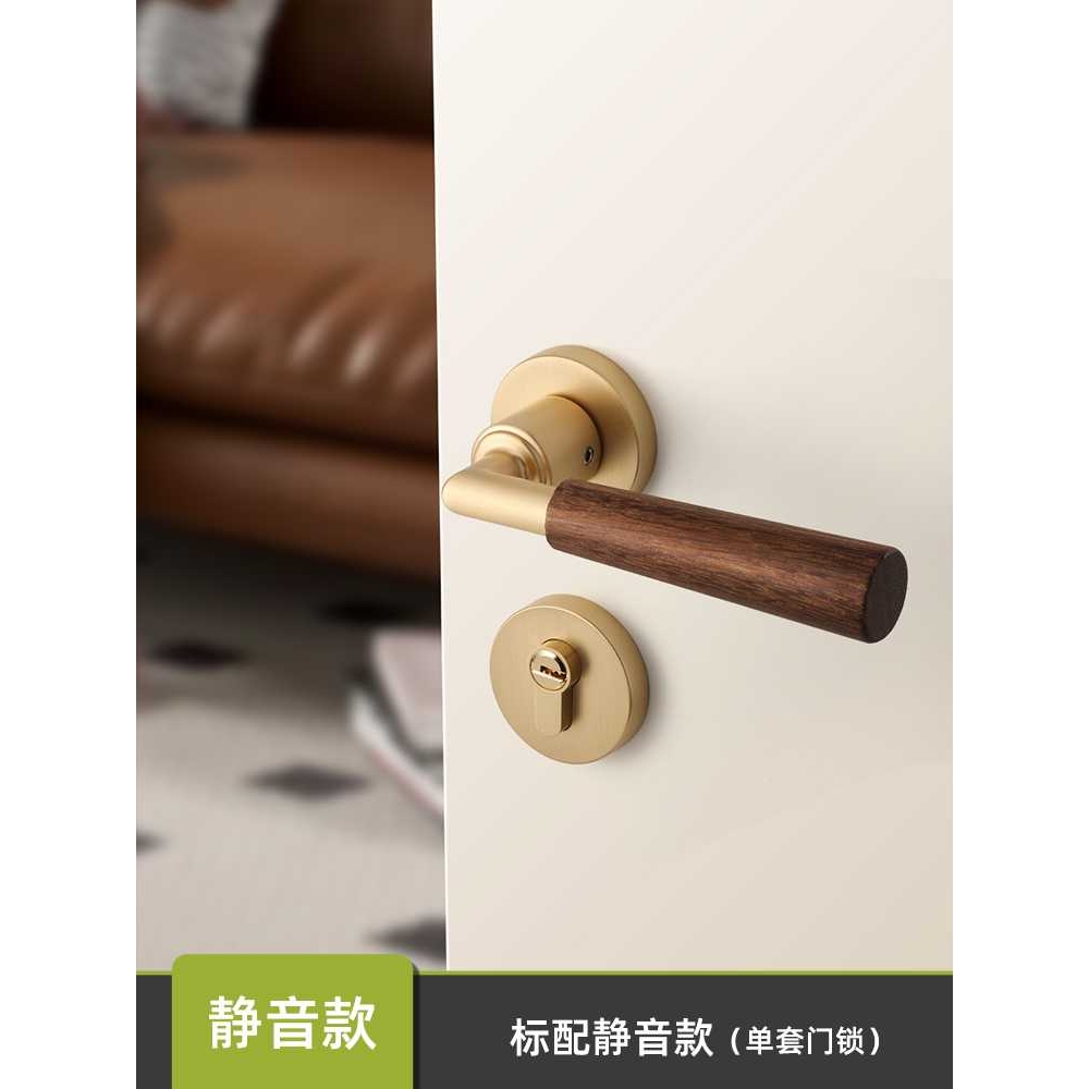 中古风复古门锁卧室静音房间门锁胡桃木木门锁室内磁吸门把手