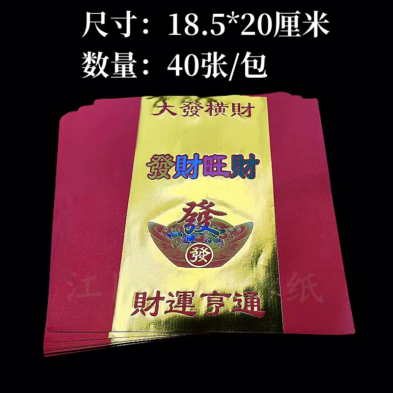 速发发字红色烫金折纸潮汕中秋折塔元宝五福钱40张/包尺寸18.5*20