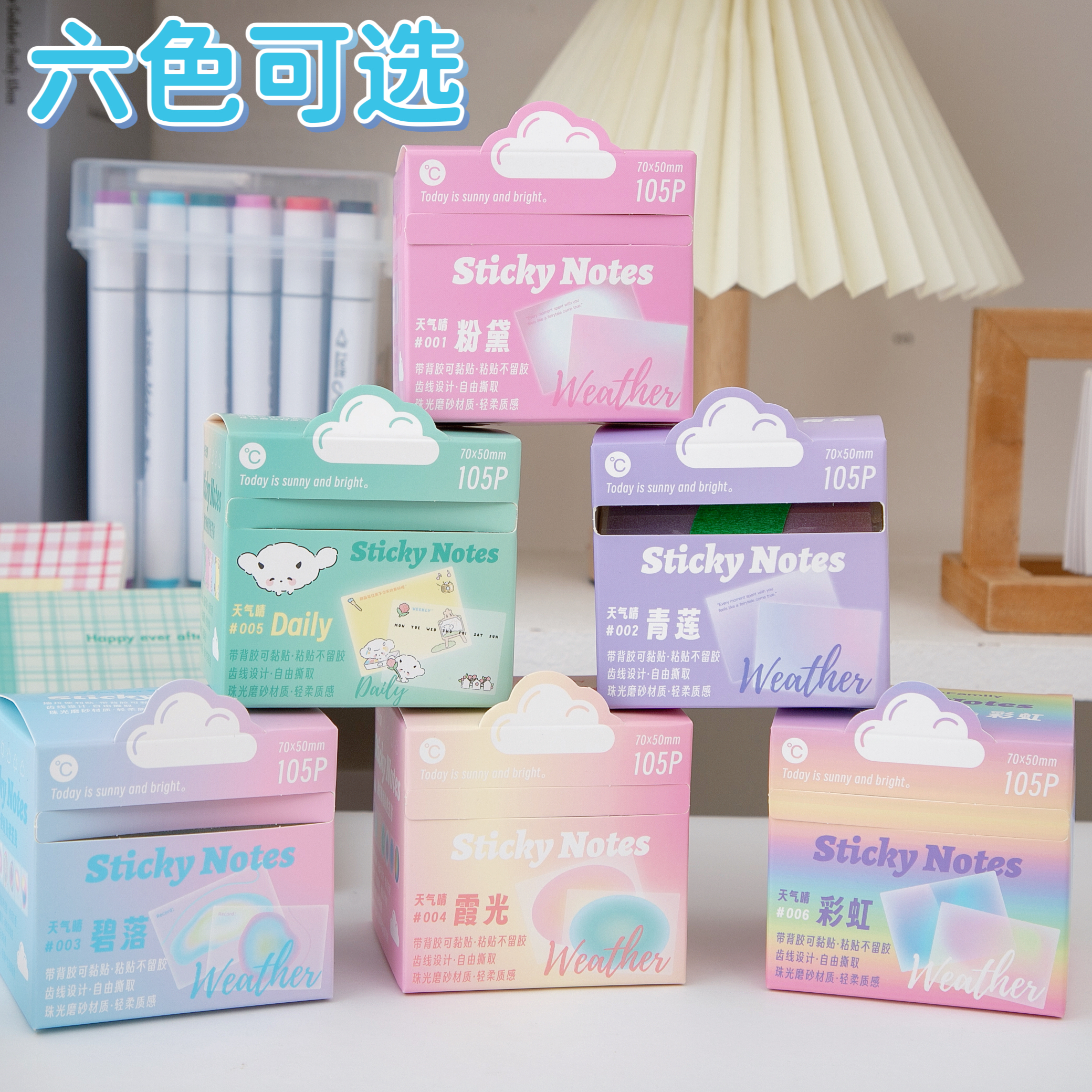 珠光抽拉便利贴多巴胺配色可抽拉渐变透明便利贴学生用中性笔可书写记事贴纸高颜值便签本N次贴粘贴重点标记