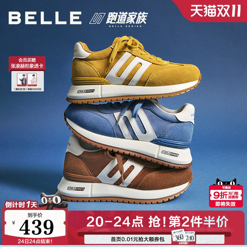 张凌赫同款百丽女鞋跑道小金甘阿甘鞋新款厚底鞋增高运动休闲鞋预