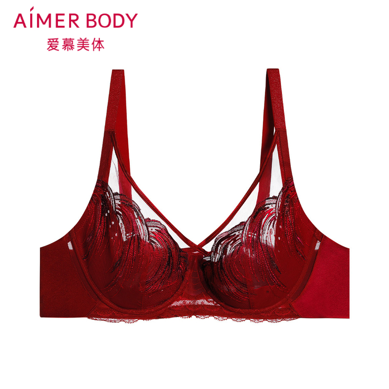 【洞力装】爱慕美体鎏金墨彩内衣女红色轻薄性感刺绣大胸显小文胸