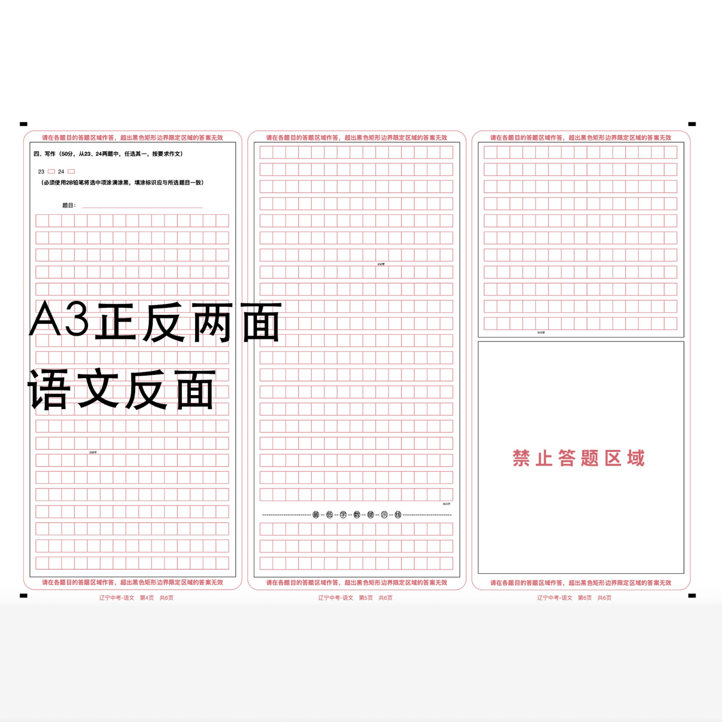 辽宁中考语数英物化道法史地生答题卡作文纸试卷模拟学业水平考试初中作文答题卡