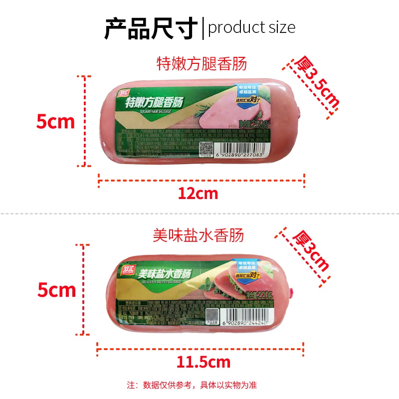 双汇特嫩方腿香肠250火腿片午餐肉火腿肠三明治切片整箱方块商用