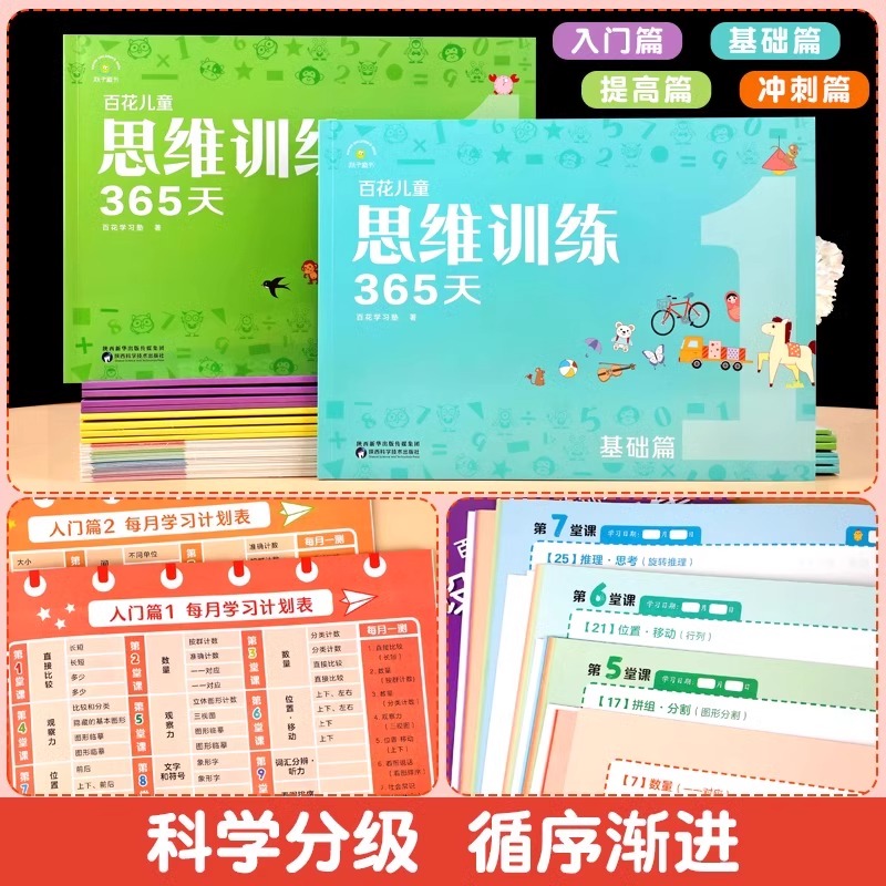 百花儿童思维训练365天 共16册 基础篇+入门篇+冲刺篇+提高篇3-6-8岁 幼小衔接学前教育 幼儿园入园逻辑思维训练早教书专注力书籍