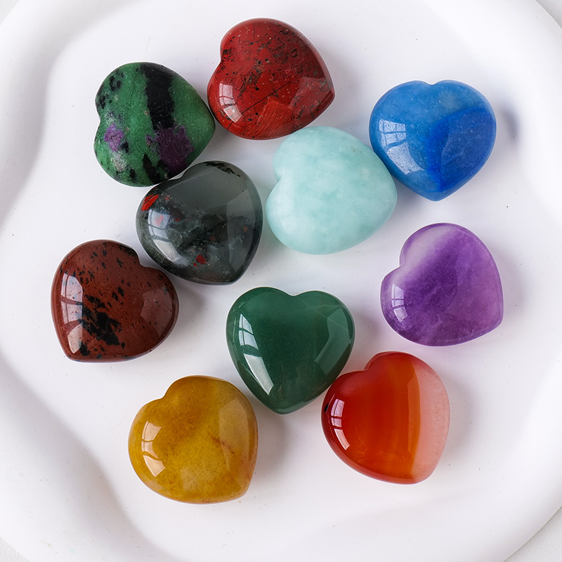 爱心吊坠天然水晶矿石毛衣链心形宝石青金石玛瑙装饰摆件蛋白石