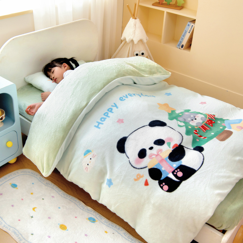 加厚牛奶绒幼儿园被子三件套冬季保暖宝宝儿童午睡专用六件套熊猫