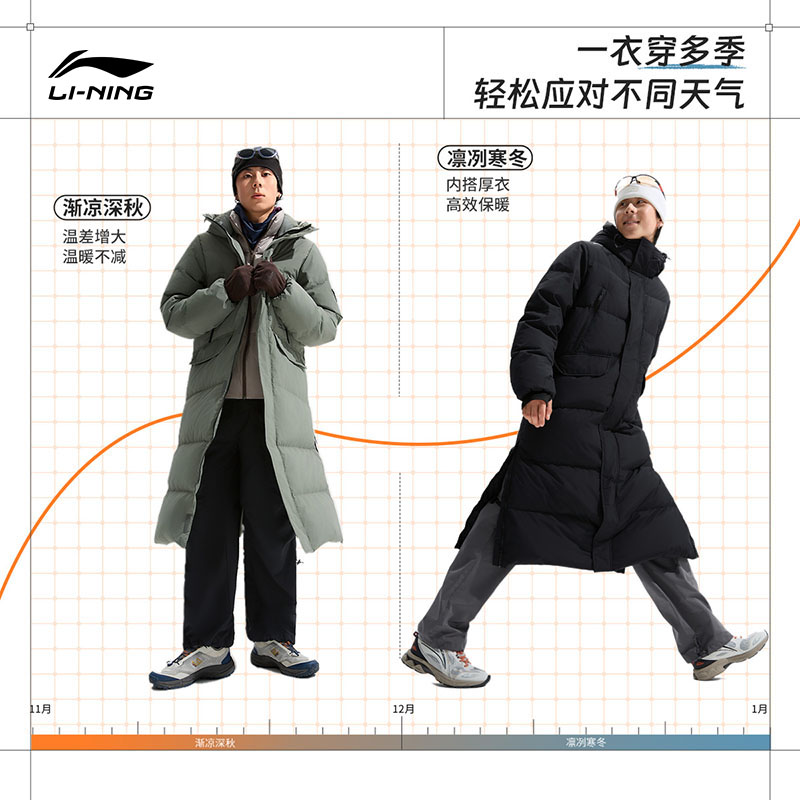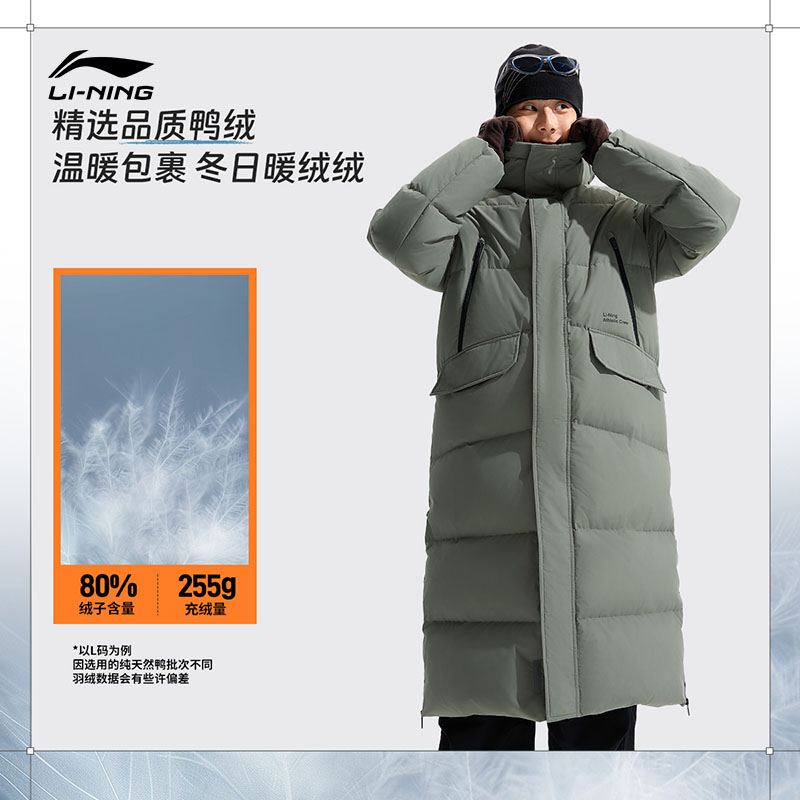 李宁羽绒服 火锅羽绒 男款溯之东方防泼水防风透湿鸭绒长羽绒服