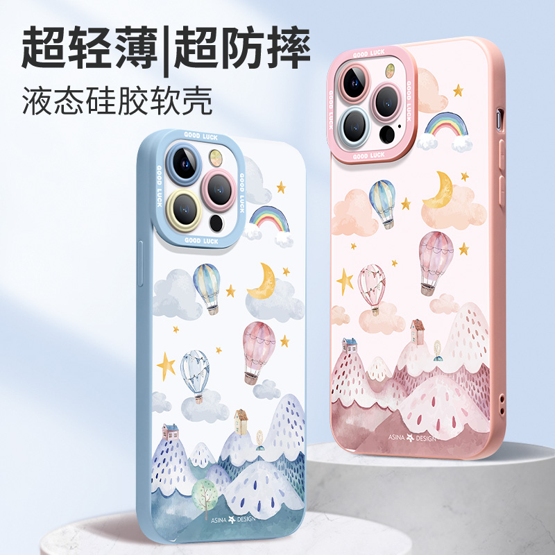 热气球之旅适用iPhone17Promax手机壳新款苹果15Pro液态硅胶ip13保护套12超薄文艺风全包pm网红创意女防摔14