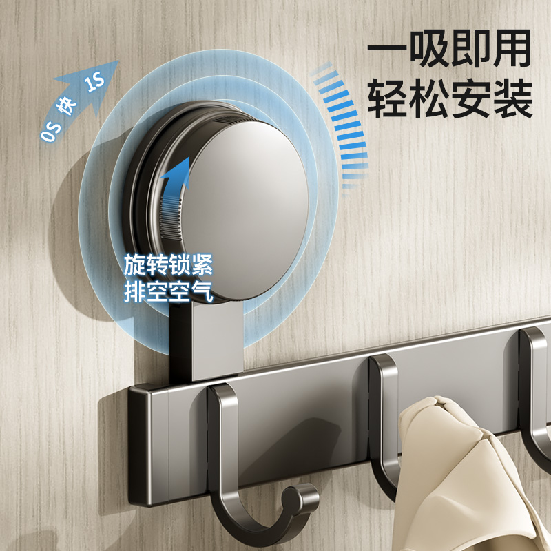 吸盘免打孔挂钩强力承重卫生间壁挂门后挂衣架浴室一排衣服毛巾灰