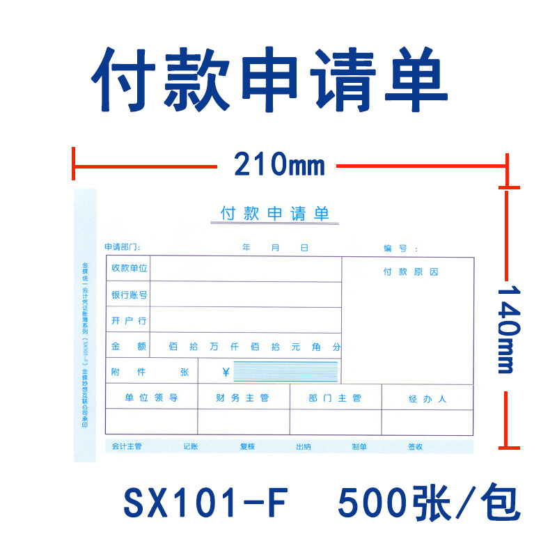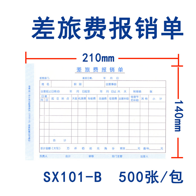 10本装金蝶210*140 KP-J101配套SX101-A 101-B C 101-E F差旅费用报销借款审批原始粘贴付款申请单空白凭证纸