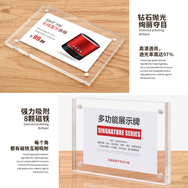 亚克力强磁面板透明磁性标价牌价格标签展示牌平面墙贴台签A4A5A6